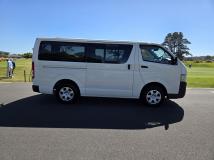 2008 Toyota Hiace 5 door (twin slider) 2.0 VVT-i chain driven petrol engine, automatic. Overall in very tidy order inside and out. Features tinted glass + cargo barrier in rear and handsfree Bluetooth radio.