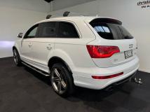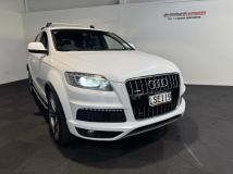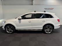 2013 Audi Q7 3.0 TDI S Line Plus Quattro 7 Seater, Attractive Ibis White with Black Leather, NZ New vehicle with Service History, 21 inch S Line Plus Segment Sports Alloys in Graphite Grey, Full Leather S Line Seating with Heated Seats, Added Roof Rails and Roof Racks, LED Daytime Running Lights, 7 Seats, Electric Tailgate, Audi MMI with CD/Stereo/Bluetooth Streaming/Reverse Camera and NZ Navigation, 8 Speed Auto with Stop/Start, Audi Towbar fitted, Running Boards fitted, Brushed Alloy inlays, BOSE Audio, 4 Zone Climate Air, Full Electrics etc. All set to hit the slopes this Winter!