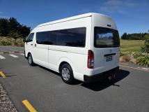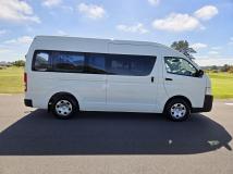 NZ New 2015 Toyota Hiace ZX Jumbo - 3.0 Turbo Diesel, 5 speed manual. Twin slider (5 door) Overall in excellent order inside and out. Features tinted glass and cargo barrier in rear of van. Huge loading capacity! Widebody longwheel base + high roof. We can remove dividing barrier if not wanted. Seats up to 5 passengers.