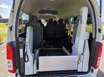 Fitted with factory Toyota wheel chair hoist that will be certified for NZ use. (Includes low volume certification and restraints) This hoist is suitable for total weight of 250KG push type wheel chair.