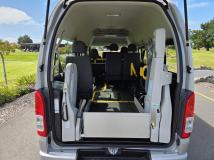 Fitted with factory Toyota wheel chair hoist that will be certified for NZ use. (Includes low volume certification and restraints) This hoist is suitable for total weight of 250KG push type wheel chair.